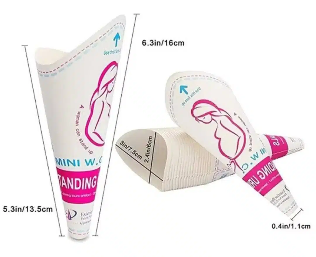 Enten du skal ut på tur i skogen, på festival eller må bruke urinal i farten så passer denne “Stand To Pee” trakten til jobben. Den gjør det lett å tisse uten å måtte dra ned buksa helt eller å måtte sette seg ned. Den er laget av papir og er egnet til engangsbruk. Kan også brukes sammen med en flaske hvis et toalett ikke er tilgjengelig. Det kommer 12 stk i pakken.